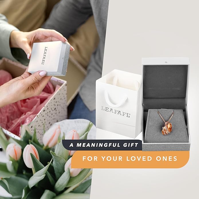 Leafael Wish Stone Pendant Necklace with Birthstone Crystal, 18K Rose Gold Plated/Silvertone, 18" + 2"