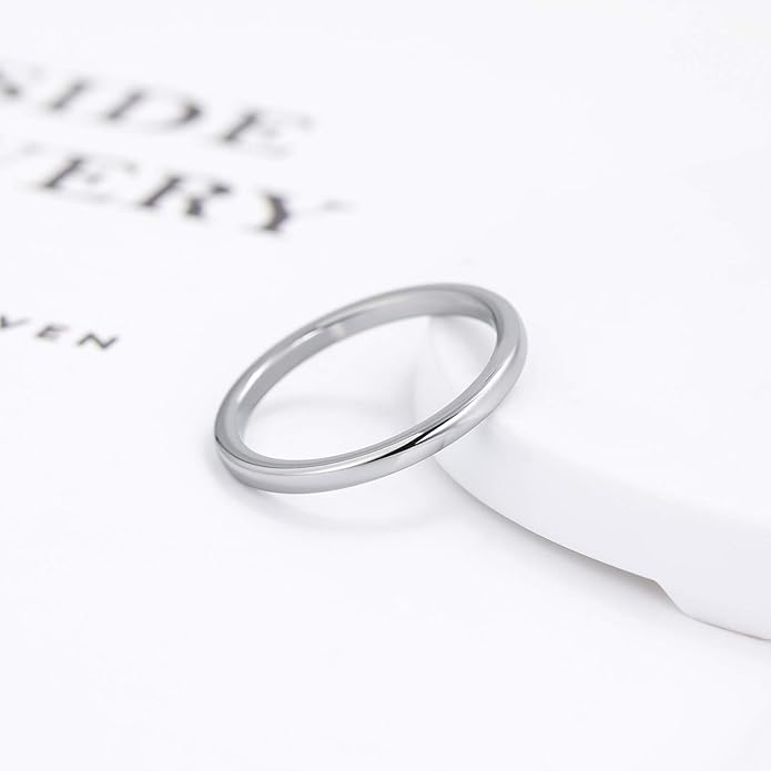 - Simply Pretty: 2mm silver dome high polished thin tungsten stackable ring, durable, heavy, scratch resistant, color retention