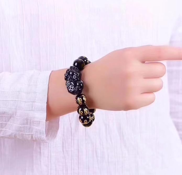 - Uique and Original: Handmade Feng Shui Om Mani Hum Padme Hum Black Obsidian bead with Pi Yao /Pi Xiu Bracelet for Wealth and a Betterdecor pouch. Design and made by ourselves