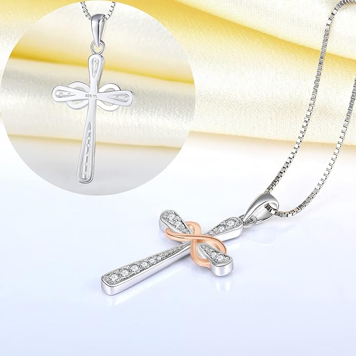 YL 925 Sterling Silver Cross Necklace for Women Halo Infinity Pendant Birthstone Jewelry for Mom