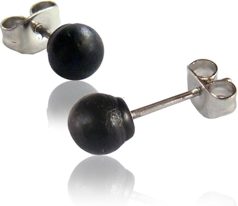- The handmade wooden studs are 0.24 inches in diameter. The metal component is made of 316L surgical steel.