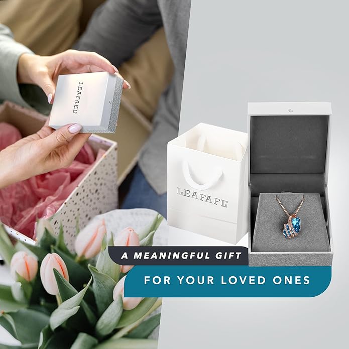 Leafael Wish Stone Pendant Necklace with Birthstone Crystal, 18K Rose Gold Plated/Silvertone, 18" + 2"