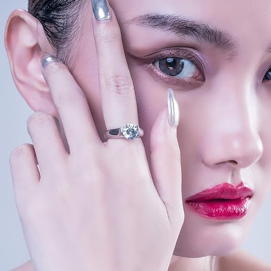 AINUOSHI 2.0 Carat Moissanite Ring, Wedding Ring, Made with Sterling Silver, Round Cut, Gift for Wedding, Engagement and Anniversary