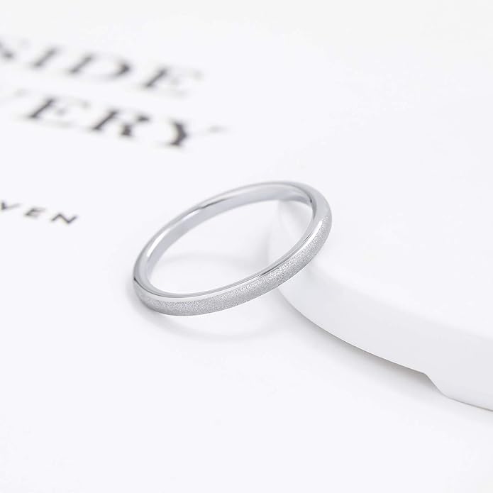 - Simply Pretty: 2mm silver dome sandblasted finish tungsten stackable ring, durable, heavy, scratch resistant, color retention