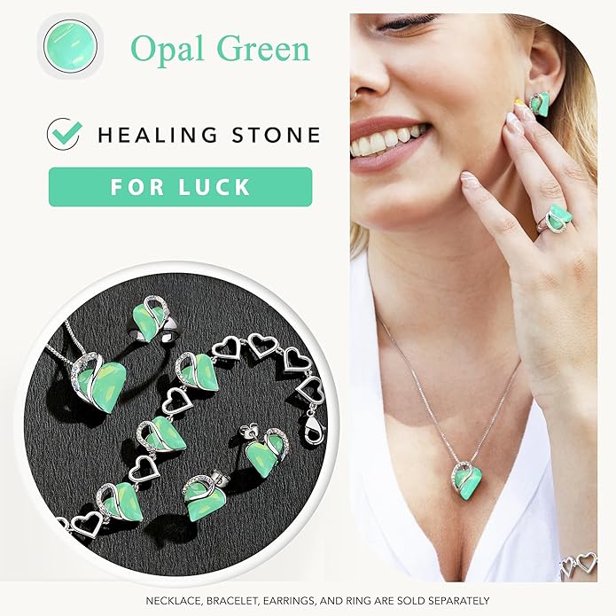 - Delicate Fashion Jewelry Gift that Fits - This woman’s necklace is adorned with a 0.75 x 0.88-inch jade opal green healing stone for luck. They are rhodium plated and designed with an 18-inch chain plus 2-inch extender, and a lobster claw clasp.