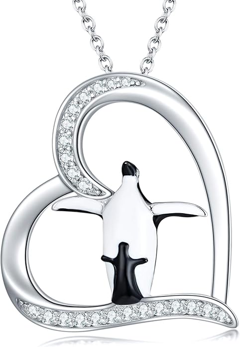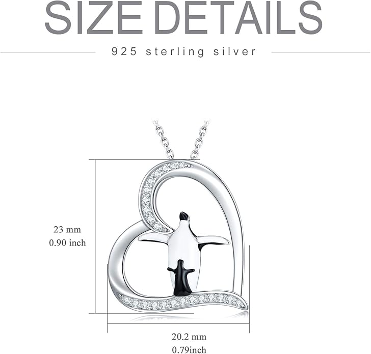 - 【💖 Lovely Penguin Love Heart Pendant Necklace Measurement】 Pendant Size: 0.9*0.79 inch. Gems: 5A CZ; Chain Length: 18"+2" adjustable chain extender, total length: 20".