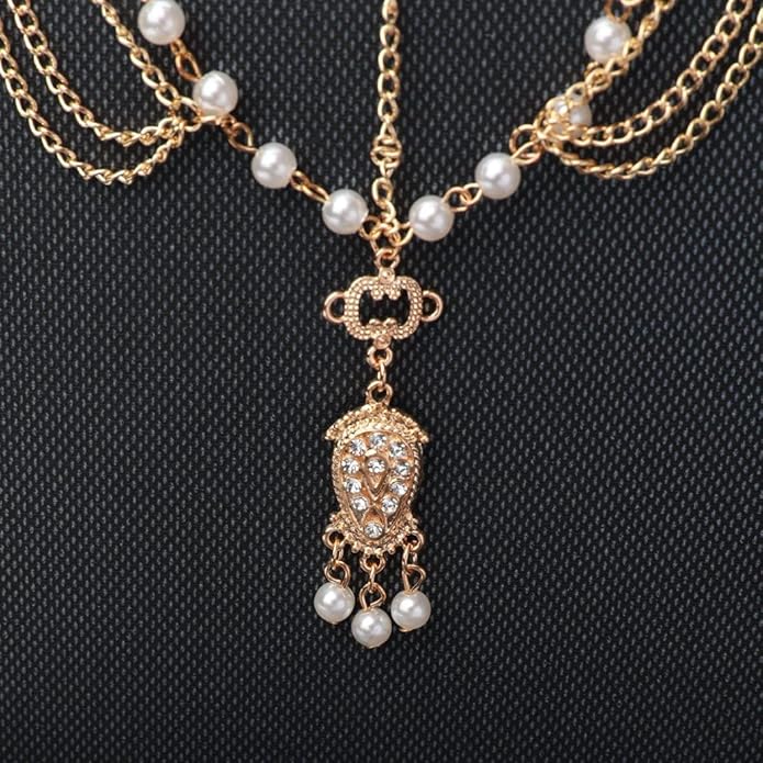 - Gold head chain is made of alloy and pearls. It will not fade and decorate you elegant and charming.