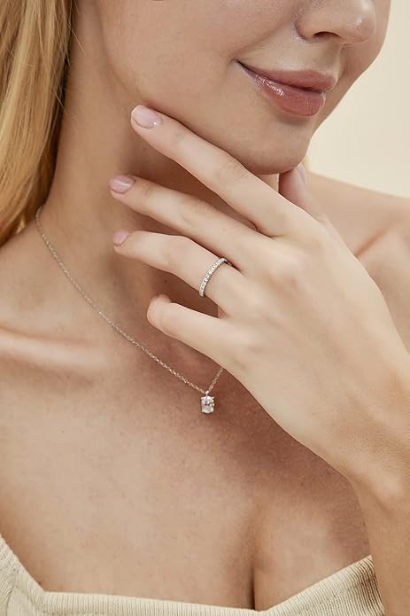 EAMTI 2mm 925 Sterling Silver Wedding Band Cubic Zirconia Half Eternity Stackable Engagement Ring Size 3-13