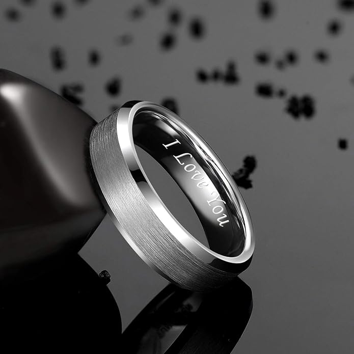 • Craft: Genuine 6mm tungsten carbide ring, simple brushed surface and beveled edge, fashion design for men and women