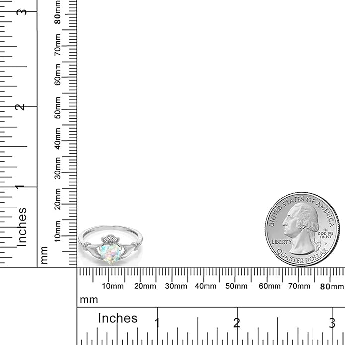 Gem Stone King 10K White Gold 6MM Heart Shape Gemstone Birthstone and White Diamond Irish Celtic Claddagh Engagement Ring | Gold Ring For Women | Available In Size 5, 6, 7, 8, 9