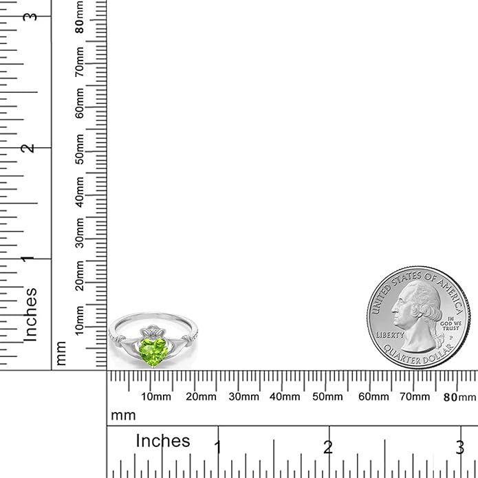 Gem Stone King 10K White Gold 6MM Heart Shape Gemstone Birthstone and White Diamond Irish Celtic Claddagh Engagement Ring | Gold Ring For Women | Available In Size 5, 6, 7, 8, 9