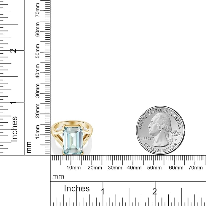 Gem Stone King 5-10 Cttw Gemstone Birthstone Solitaire Engagement Ring For Women | 18K Yellow Gold Plated Silver | 14X10MM Emerald Cut | Wedding Anniversary Ring | Available In Size 5, 6, 7, 8, 9