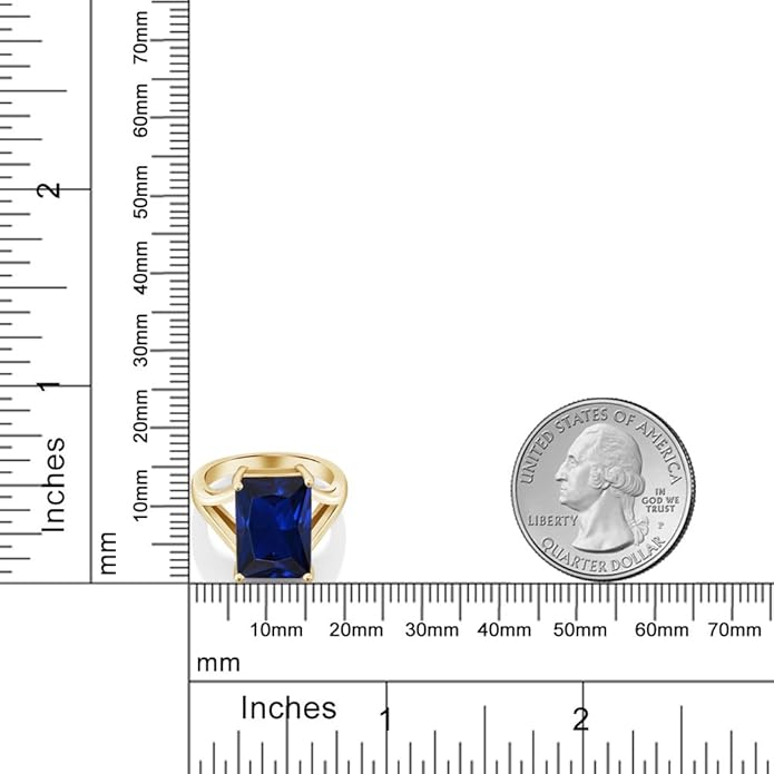 Gem Stone King 5-10 Cttw Gemstone Birthstone Solitaire Engagement Ring For Women | 18K Yellow Gold Plated Silver | 14X10MM Emerald Cut | Wedding Anniversary Ring | Available In Size 5, 6, 7, 8, 9