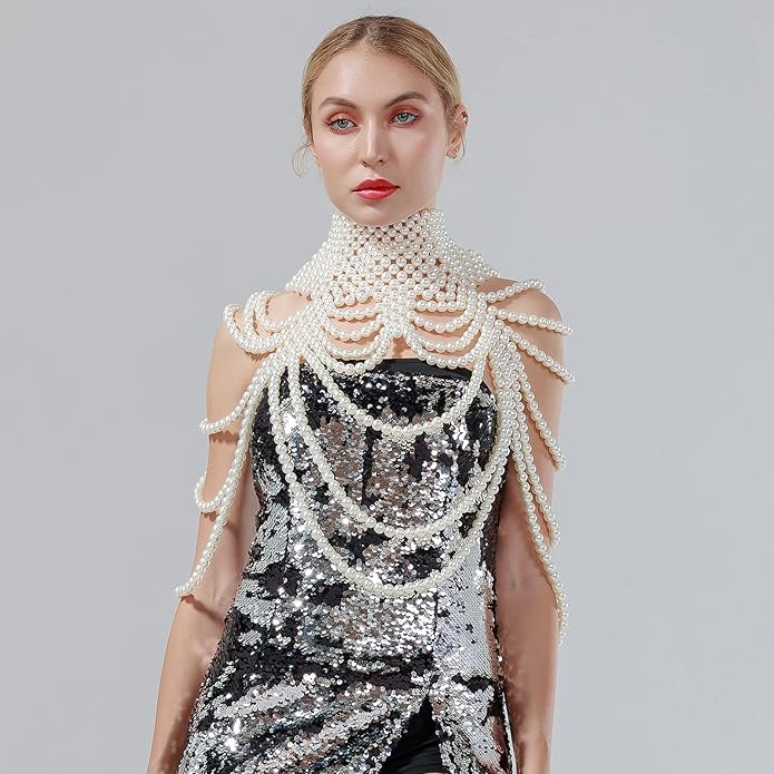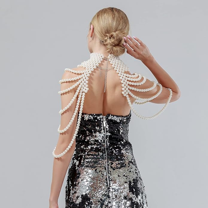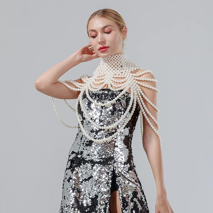 CCbodily Pearl Body Chain Bra - Fashion Shoulder Necklaces Bra Chain Body Jewelry