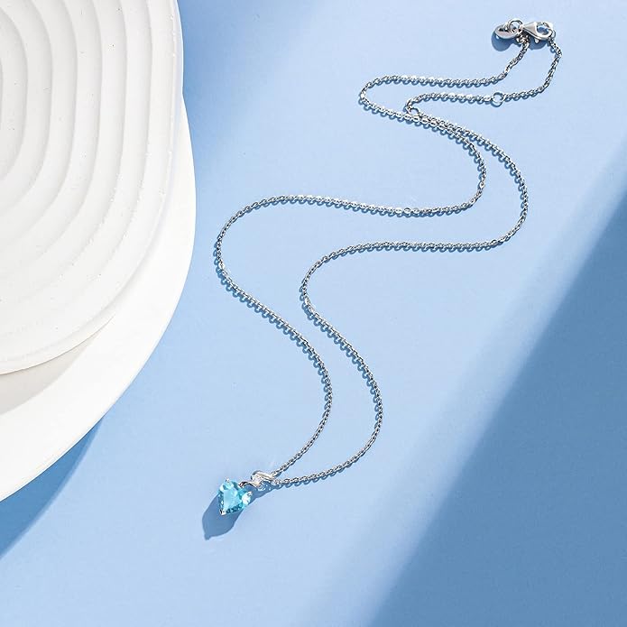 - đź’•Heart Necklace:đź’• The pendant is made up of 14k solid real white gold, and the pendant is set a 8x8mm 1.45 Carat March Birthstone Aquamarine. 925 Silver Chain length is 16"+2" (adjustable chain fits for most female), pendant size is 14MMx8MM, Weight: 2.5g