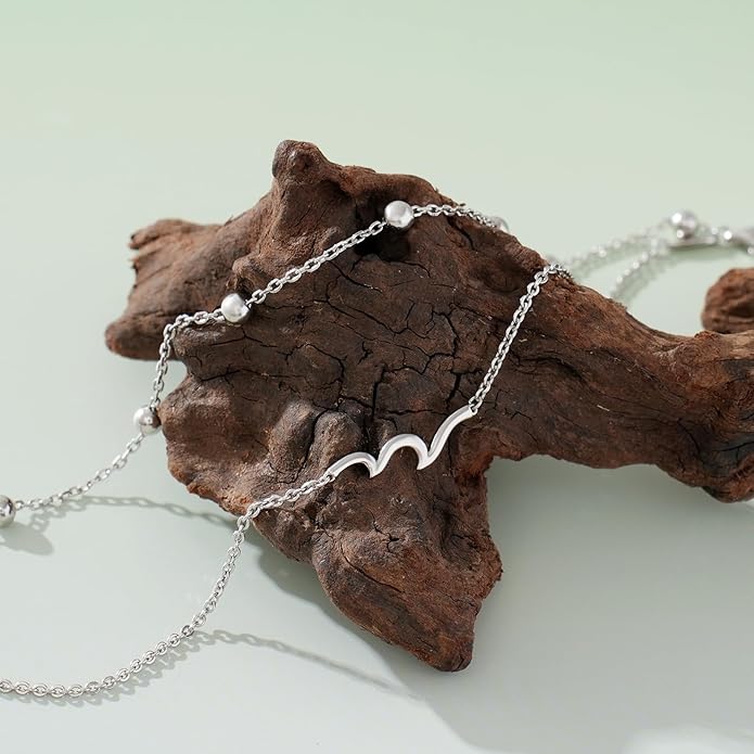 - ♦ SIZE & MATERIAL ♦ Wave size:0.84" x 0.19". Beaded diameter:3mm. Chain length: 10.7", adjusts to 8.7" *** Hypoallergenic gold plated sterling silver, nickel-free and lead-free, safe for everyone even for those with sensitive skin.