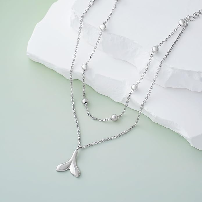 - ♦ Elevate your beachy style with our adjustable 925 Sterling Silver Mermaid Tail Anklet! Crafted with a chic double-layer design and a whimsical whale/dolphin tail charm, this hypoallergenic chain combines boho artistry with everyday versatility.