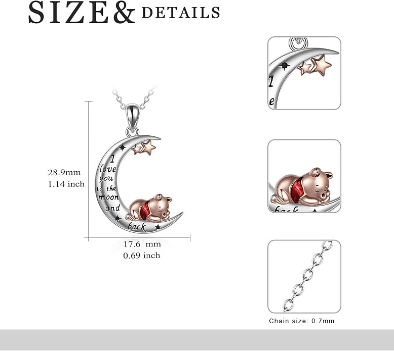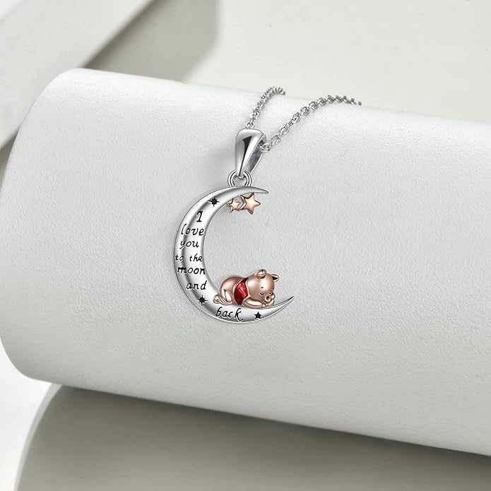 LILALO Bear Necklace Sterling Silver Moon Jewelry with I Love You To the Moon And Back Bear Gifts