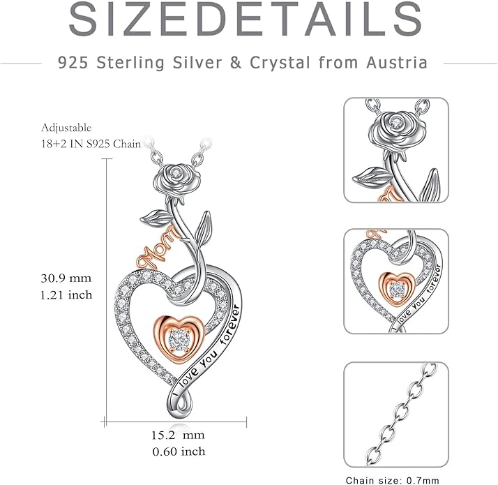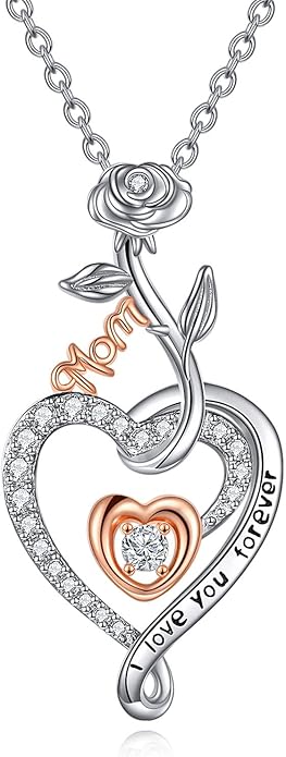- ❤️925 STERLING SILVER❤️ Real 925 sterling silver rose flower mom necklace , hypoallergenic,nickel-free,lead-free,cadmium-free,This heart-shaped mom necklace will not turn your skin green, red, or itchy.