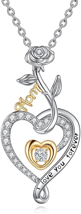 - ❤️925 STERLING SILVER❤️ Real 925 sterling silver rose flower mom necklace , hypoallergenic,This heart-shaped mom necklace will not turn your skin green, red, or itchy.
