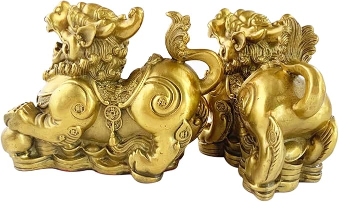 Brass pixiu statue 2set,Feng Shui home Decor a pair pi yao brass sculpture,good luck golden wealth pixiu statue (4.4" L x 1.9" W x 3.6" H )
