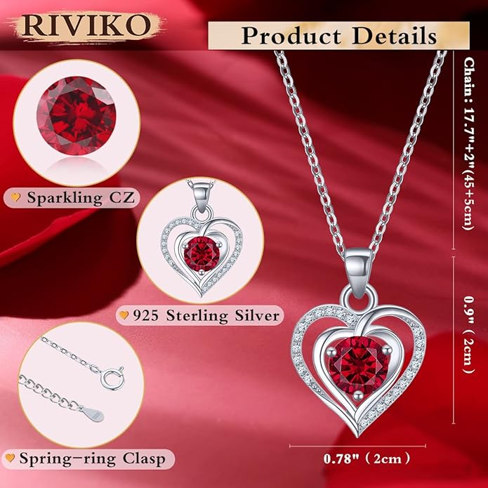 - 💗【925 STERLING SILVER NECKLACE 】Our July birthstone necklace made with sparkling zircon stone features 925 sterling silver with rhodium-plated or rose gold plated chain. These safe materials will not turn your skin green, and comfortable to wear it. Pendant Size: 0.9”ⅹ1.02”, Chain Length: 17.7”+2”. The women's necklace comes with a navy-blue gift box by RIVIKO.Manufacturer recommended age:13+