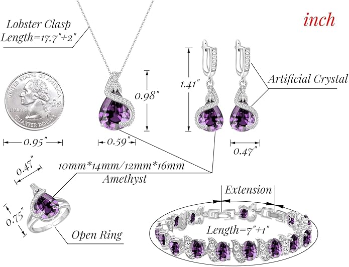 - ♥ROMANTIC WEDDING JEWELRY♥: This elegant and classic purple teardrop jewelry set is an ideal accessory for brides and bridesmaids, it fits perfectly with wedding dress and flowers and will make your wedding more romantic. Your bridesmaids will share your happiness with it. It is also a good choice to take it as birthday, Mother's day, Valentine's day gift for mother, wife, lover and yourself.