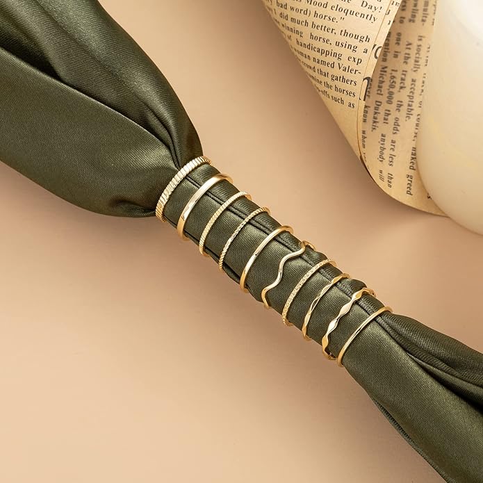 - WHAT YOU GET --One order comes 10pcs 18k gold plated Knuckle Midi rings, same size and multiple styles, width 1-2 mm. All-match classic style, essential stackable rings set, provide you versatility and replacement choice