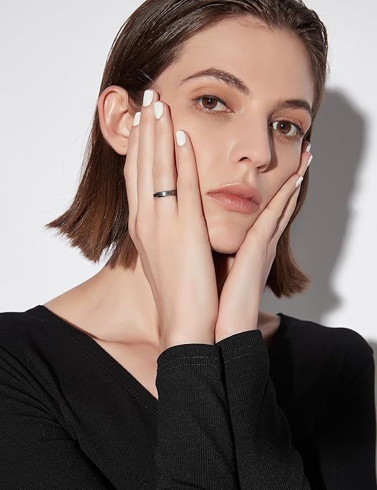 • Craft: Genuine 4mm tungsten carbide ring, simple brushed surface and beveled edge, fashion design for men and women