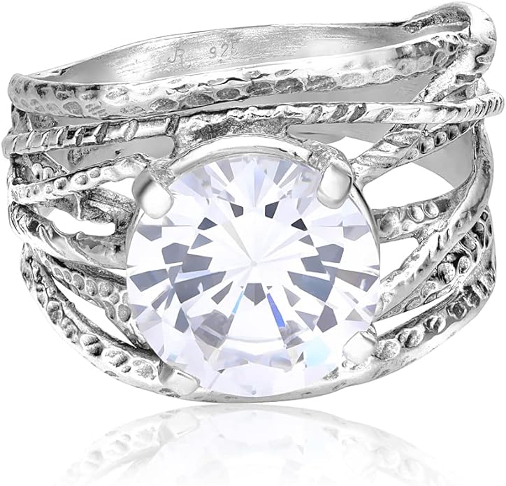 JEAN RACHEL JEWELRY 925 Sterling Silver Ring - Wrap Vintage Design with Prong Set Round Cubic Zirconia - Hypoallergenic, Lead & Nickel Free - Artisan Handcrafted Statement Rings for Women