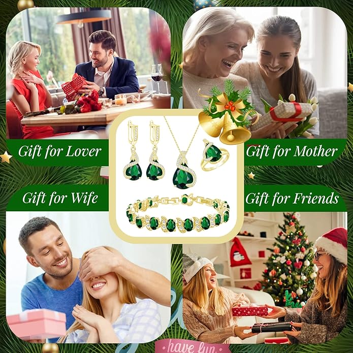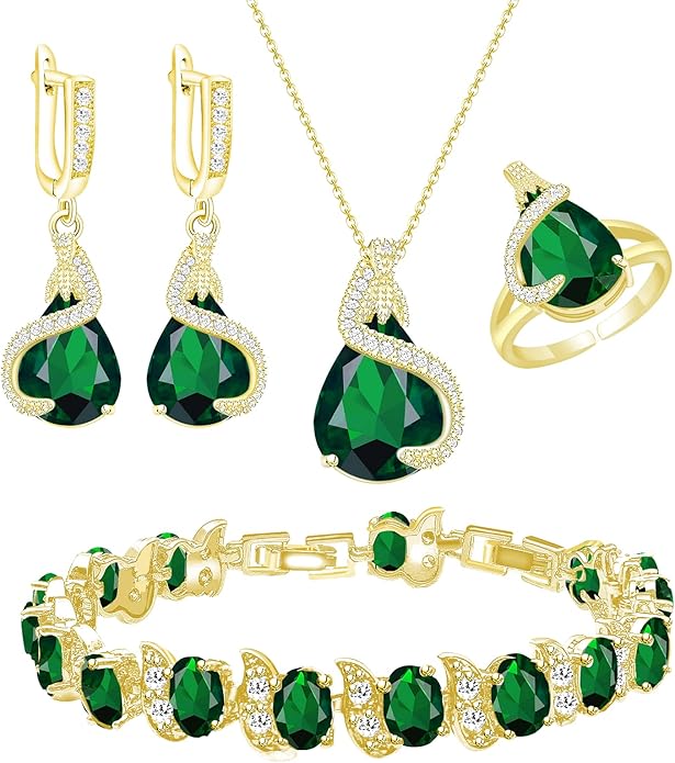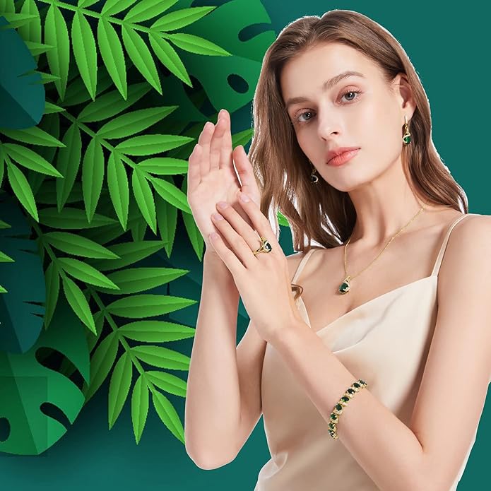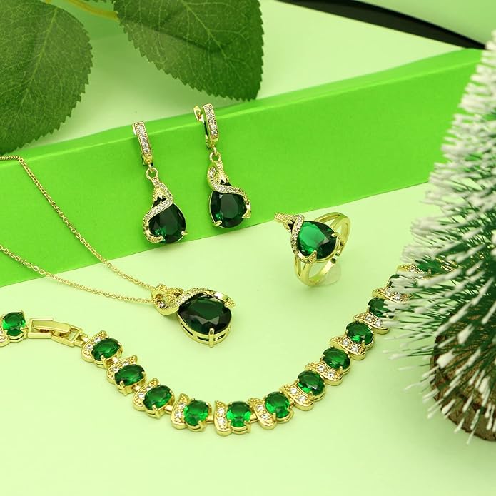 - ♥IDEAL GIFT FOR WOMEN♥: The gold tone jewelry set has an elegant curved construction, and the unique shape and classic teardrop created-emerald make it an ideal gift for a woman on Valentine's Day/Mother's Day/Birthday/Anniversary. And they will be the perfect accessory for weddings, parties, proms.