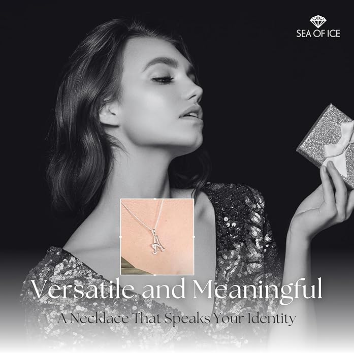 SEA OF ICE Letter Initial Necklace, Alphabet Letter Pendant Necklace, Sterling Silver, Gold, Rose Gold Necklace for Women, Elegant Initial Necklaces, Personalized Custom Women's Necklaces