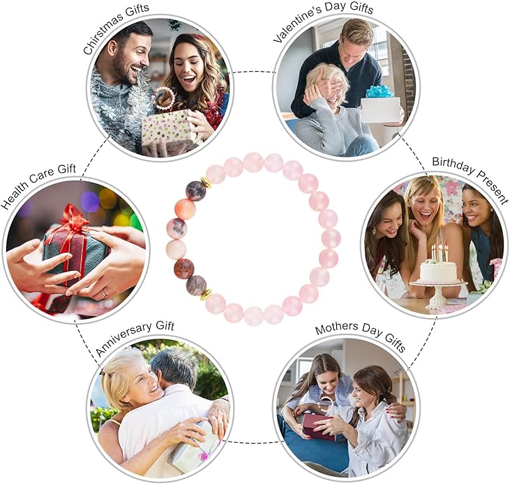 - 【Pink Crystal Stone Bracelet】: Rose Quartz Wealth Pink Crystal Bracelet helps to attract love, gather and attract wealth, prosper business. Rose Quartz bracelet that can feel our fortunes are getting better for men and women. It's the best bracelets for family, couples and friends. Note: The Pink beaded bracelets are all natural real gemstones. It's difficult to guarantee that each gemstone is exactly the same as the photo.