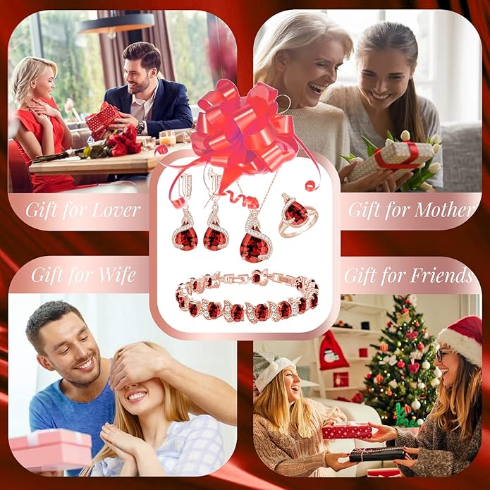 - ❤UNIQUE GIFT❤: The elegant curved construction wraps the sparkling created-garnet, the bright red luster will easily catch the eye of the crowd and make you the center of attention. This jewelry set is the perfect accessory for prom, wedding, party and ball. It is an ideal choice as birthday/anniversary/Valentine's Day/Mother's Day/Thanksgiving gift for sister/friend/bridesmaid/mom/wife and yourself.