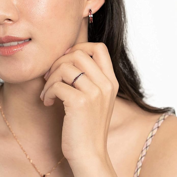 - This band ring is stackable. Combine different colors to create your personal charisma and match your style. In every event, you will be the spotlight. You can wear the birthstone ring each month for luckiness whole year.