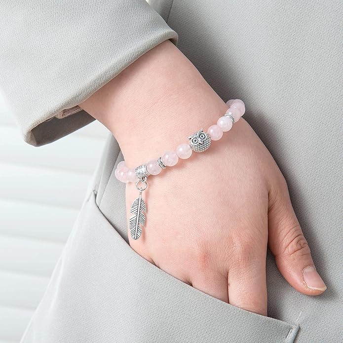 Softones 8mm Beads Owl Bracelets for Women Handmade Natural Stone Owl Gifts for Women Crystals Bracelet for Women Men Spiritual Energy Bracelet