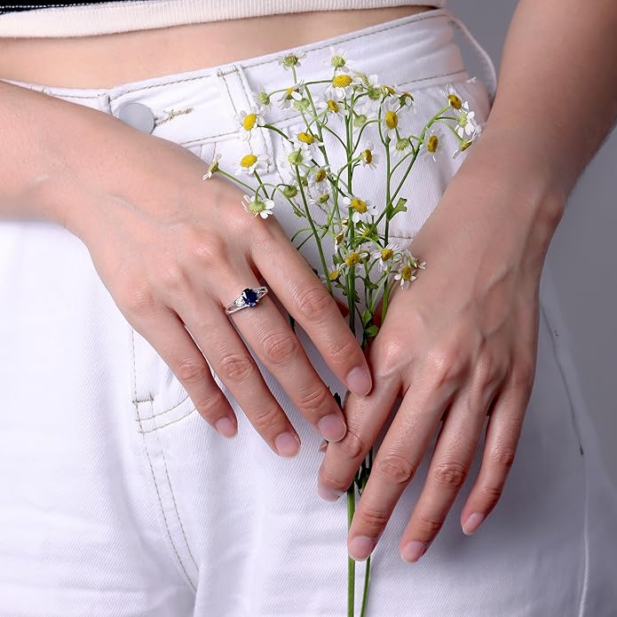 - Main Stone: 1.75 ct Created Sapphire(8×6mm), ----Accent Stone: Cubic Zirconia,----Metal: Sterling Silver Plated With Rhodium,----Color: Blue,----Birthstone:September Birthstone,---- Anniversary Gems:5th,45th,75th Anniversary Gemstone