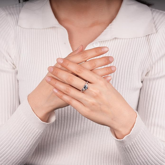 - MATERIAL----Main Stone: 1.87 ct Created Alexandrite(8×6mm), ----Accent Stone: Cubic Zirconia,----Metal: Sterling Silver Plated With Rhodium,----Color: Color Changing,----Birthstone:June Birthstone,----Anniversary Gems:55th Anniversary Gemstone