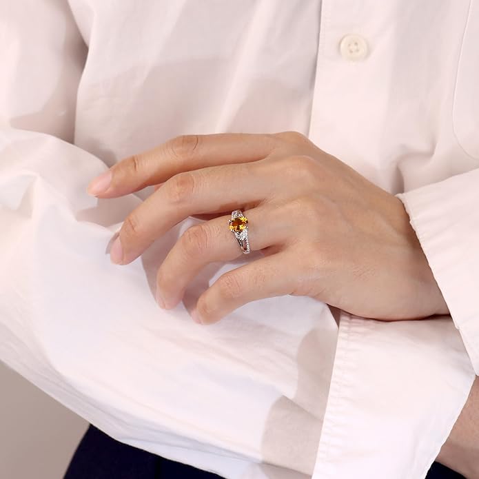 - MATERIAL----Main Stone: 1.14 ct Citrine(8×6mm), ----Accent Stone: Cubic Zirconia,----Metal: Sterling Silver Plated With Rhodium----Color: Yellow,----Birthstone:November Birthstone,---- Anniversary Gems:13th Anniversary Gemstone