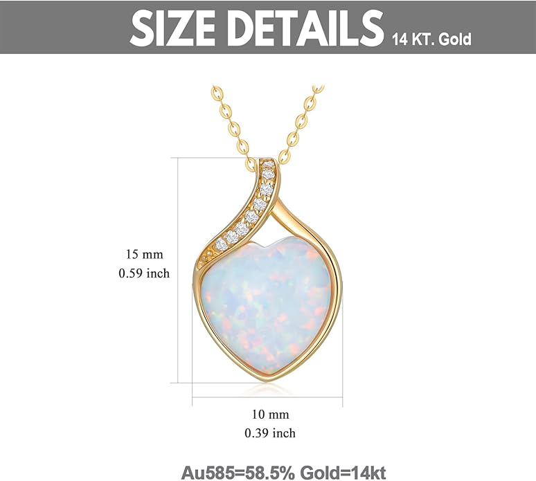 - 【Simple and Charming】We take timeless heart shape opal and add color to it with our 14K gold pendants. Diamonds symbolize eternal love,opals and diamonds are a perfect match, like eternal and unwavering love guarding a heart.