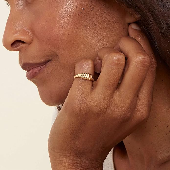 - ♥MINIMALIST DESIGN♥ -- Gold slim signet stacking rings cute and modern, Croissant design minimalist and Special,fashion without losing classics,minimalist trendy yet eternal. This elegant finger ring is thin and lightweight but sturdy, never out of shape. High polished smooth surface without sharp edge, does not rip your clothes or scratch your hands. Comfort fit jewelry design allows you wear it every day.
