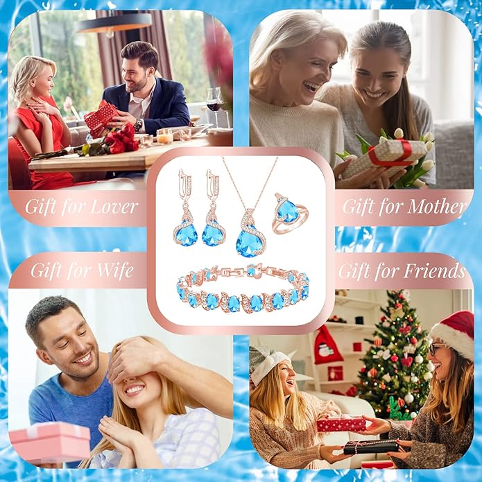 - ❤JEWELRY SET FOR WOMEN❤:This sky blue teardrop jewelry set is as clear and transparent as sea water in natural light. It emits a glamorous sky blue glow, like the color of a clear sky or the sea, and it is especially suitable for outdoor weddings. It is also a good choice as a birthday Valentine's Day Mother's Day Christmas Thanksgiving gift for friends, girlfriend, wife, mother, sister and yourself.