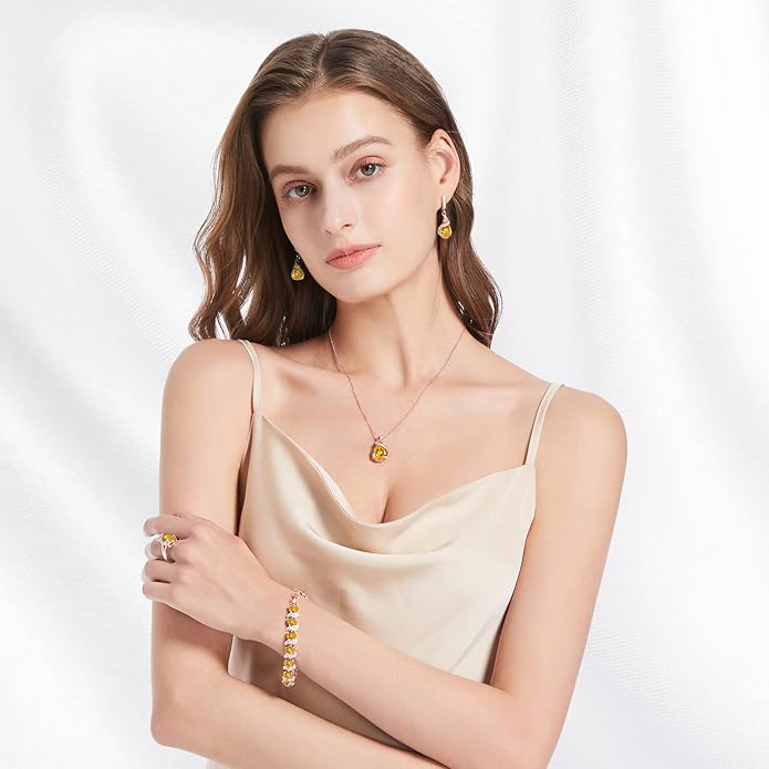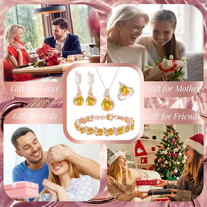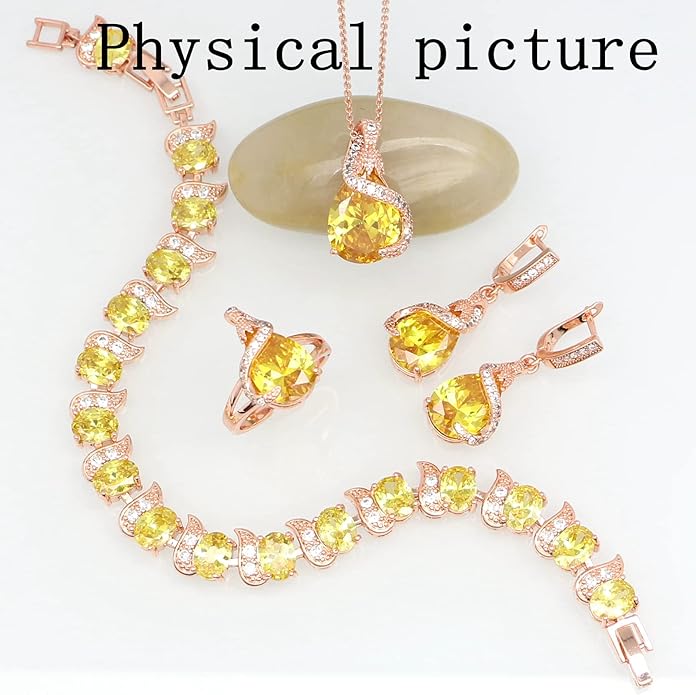 - ❤IDEAL GIFT FOR WOMEN❤: This bright yellow and rose gold jewelry set will sparkle in natural light and is perfect for an outdoor wedding. It is also a good choice for daily wear. It is ideal birthday, Valentine's Day, Mother's Day, Christmas gift for friends wife mother sister daughter.
