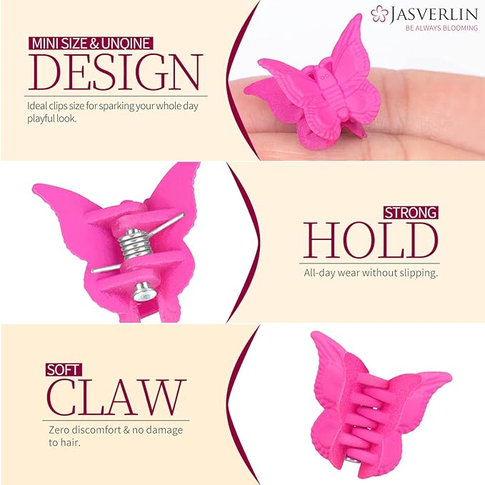 - Superior Quality Shine: Make every occasion sparkle with our JASVERLIN MINI BUTTERFLY CLIPS. Created from premium materials, these sturdy and attractive clips are suitable for all hair types and sure to enhance your shine