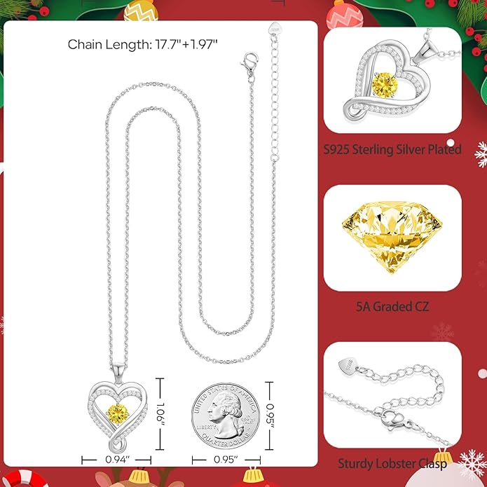 - S925 Infinity Love Heart Necklace for Women : The necklace features infinity double heart design to represents the Infinite love to your loved ones or yourself. And the silver heart pendant and chain is S925 sterling silver plated, and the cable chain has an extender and a lobster clasp ( 18"+2"), suitable for most women. This love jewelry is a great gift for woman on any special day, such as Birthday, Anniversary, Christmas, Thansgiving, New Year, Valentines’s Day, Mother’s Day, etc.
