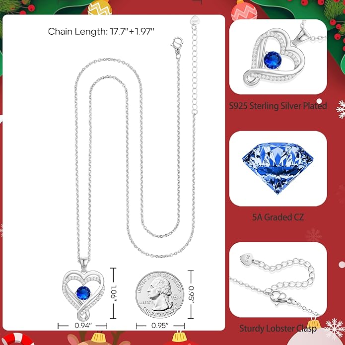 - S925 Infinity Love Heart Necklace for Women : The necklace features infinity double heart design to represents the Infinite love to your loved ones or yourself. And the silver heart pendant and chain is S925 sterling silver plated, and the cable chain has an extender and a lobster clasp ( 18"+2"), suitable for most women. This love jewelry is a great gift for woman on any special day, such as Birthday, Anniversary, Christmas, Thansgiving, New Year, Valentines’s Day, Mother’s Day, etc.