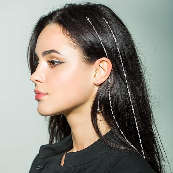 Chunyin 6 Pcs Rhinestone Hair Chains for Women Pearl Charm Rhinestone Hair Jewelry Accessories Crystal Extensions Clips Silver Gold Pins for Braids(Adjustable Silver)