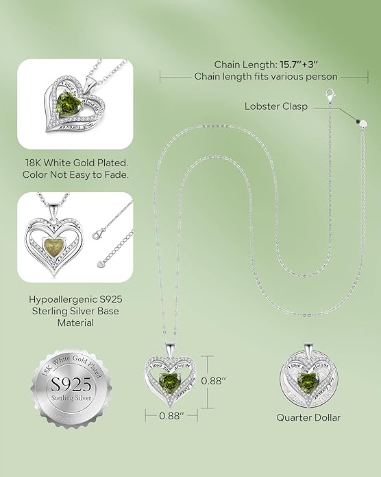 - 【Necklace Gift that is S925 Sterling Silver】Everything is S925 sterling silver including the chain, the pendant, the clasp. We sell real S925 products, and the product withstands any kind of S925 test. The necklace for her is filled with white gold on the outside layer.
