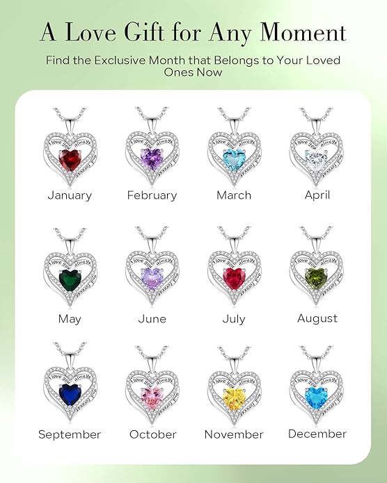 - 【12 Colors of Birthstones for 12 Months】The r birthstone necklace makes a perfect birthday gift for women. Garnet stone for Jan, Amethyst for Feb, Aquamarine for March, Diamond for Apr, Emerald for May, Alexandrite for June, Ruby for July, Peridot for Aug, Sapphire for Sept, Tourmaline for Oct, Citrine for Nov, Turquoise for Dec.