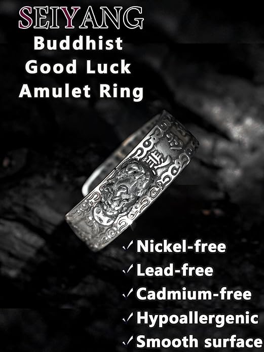 - đź–¤Size đź–¤ Feng shui mantra ring size 10#, could be adjusted from size 9# to size 11#, width 0.75cm, weight: 7.9 g. Packaged in an elegant gifts box, Perfect for giving or safekeeping.